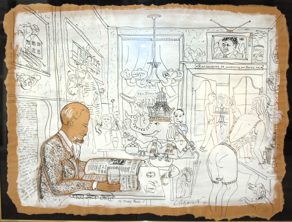 Freddy Reddy på Valkyrien Restaurant «Freddy Reddy på Valkyrien» Brown paper, acrylic white, pen and ink
